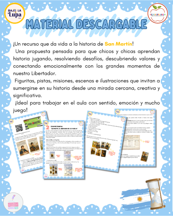 Ideal para trabajar en efemérides, proyectos escolares, o como parte de una secuencia didáctica sobre San Martín y los valores.
