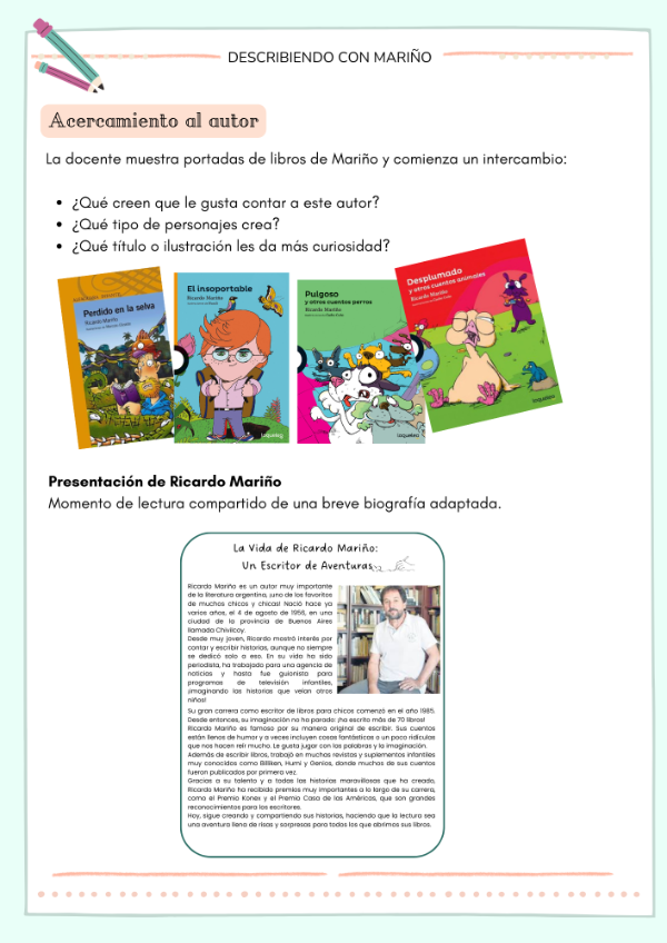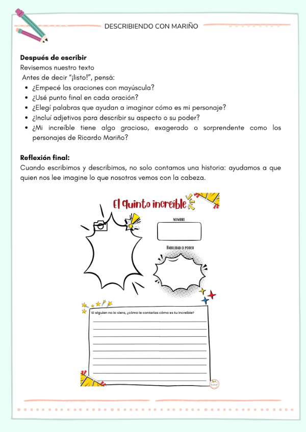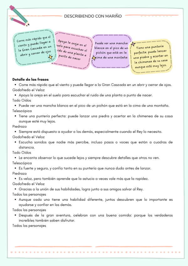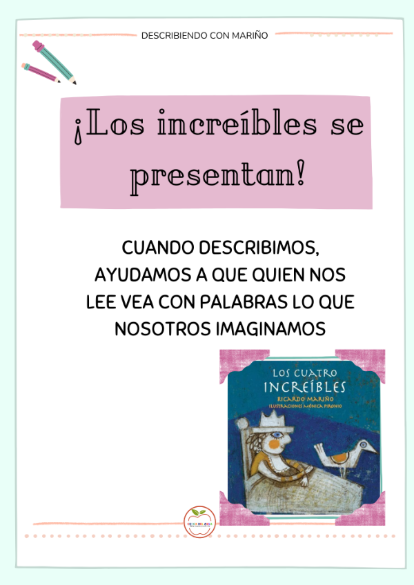 Este recurso propone una secuencia completa para trabajar la descripción en el aula, inspirada en el cuento Los 4 increíbles de Ricardo Mariño.