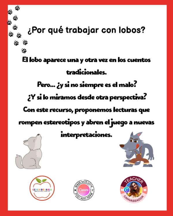 Este recurso está diseñado para acompañar una secuencia didáctica centrada en el personaje del lobo en los cuentos tradicionales y sus reversiones.